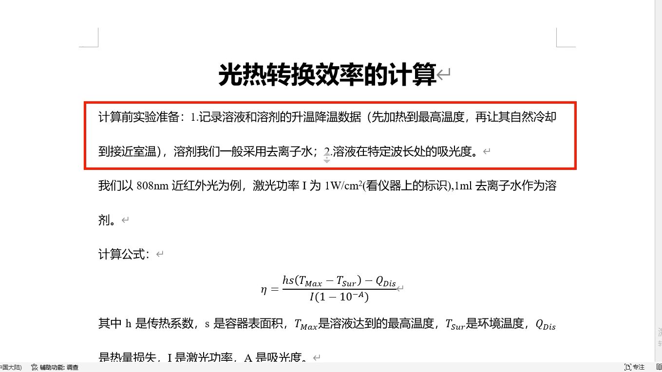 光热转换效率的计算